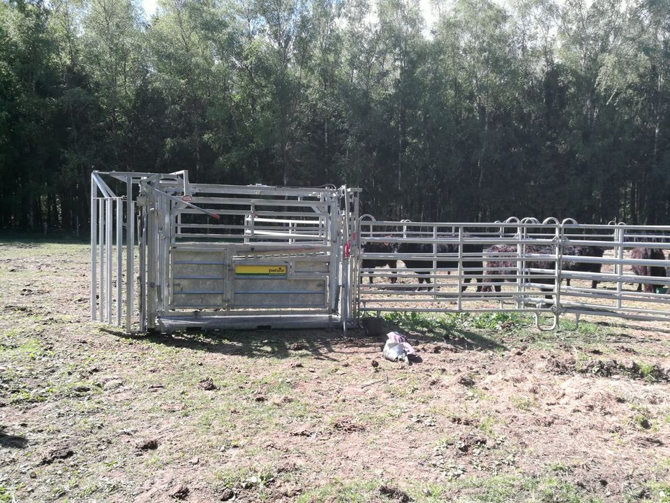Das ist unser Behandlungsstand den wir für unsere Untersuchungen so wie Klauenpflege nutzen. Sehr sicher für die Tiere den Tierarzt und uns. Sehr gut gefällt uns da die Möglichkeit das wir die Seiten verjüngen können. Somit können die kleineren und oder jüngeren Tiere sich nicht im Stand umdrehen.